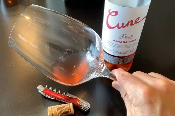 この後はグラスに注ぎテイスティングをします。状態の確認です。一口分の少量のワインを注ぎ、スワリングします。反時計回りに3回ほどワインを回します。手首を軸にしてグラスの一番上を回す感覚で動かすと、うまく液体がグラスの中で回転します。反時計回りで回すのは、回しすぎてワインがグラスから飛び出しても、目の前の人ではなく自分にかかるからだそうです。