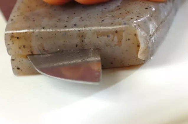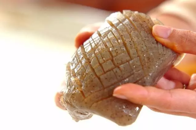 1つめのチェックポイントはぬめりです。傷んでいないこんにゃくは、触ってもぷるぷるとしていて、手につきません。しかし傷んでいるこんにゃくの触り心地はぬめぬめとしており、手にねばりつくような感覚があります。