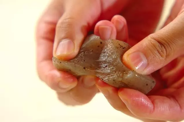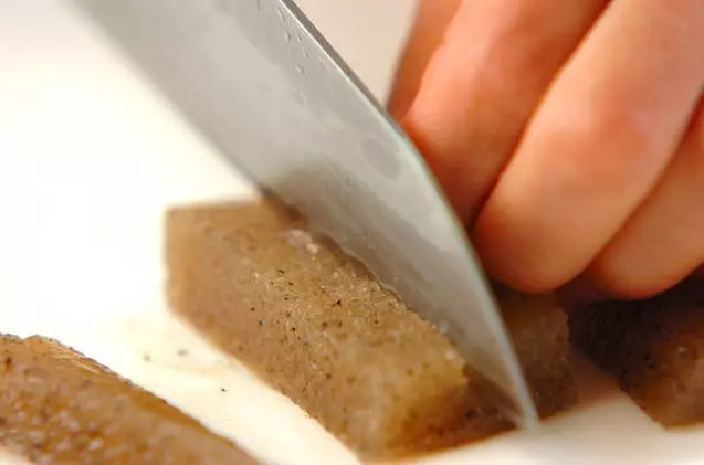 手順1:こんにゃくを適当な大きさにカットし、塩もみをします