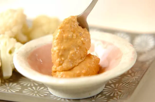 - <合わせみそ>の材料を混ぜ合わせる。