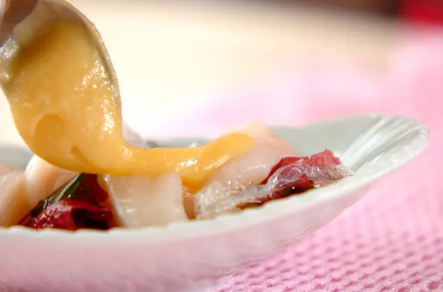 手順3:しばらくそのまま味を馴染ませ、粗熱を取る。粗熱が取れたら<合わせみそ>を洗い流し、食べやすい大きさに切って器に盛る。