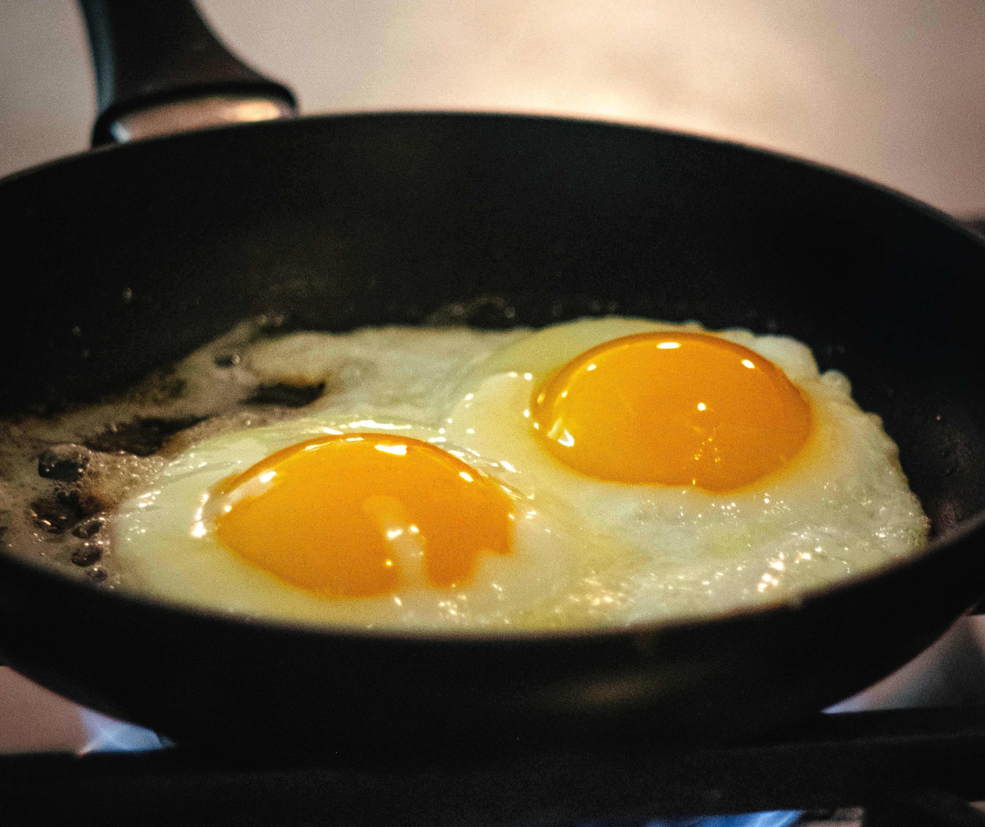 卵を解凍して、生卵と同じようにフライパンで焼くだけです。黄身の部分がこんもりと固形化しているので、解凍直後に殻をむいて半分に切り、1個の卵で2つの目玉焼きを作ることもできますよ。