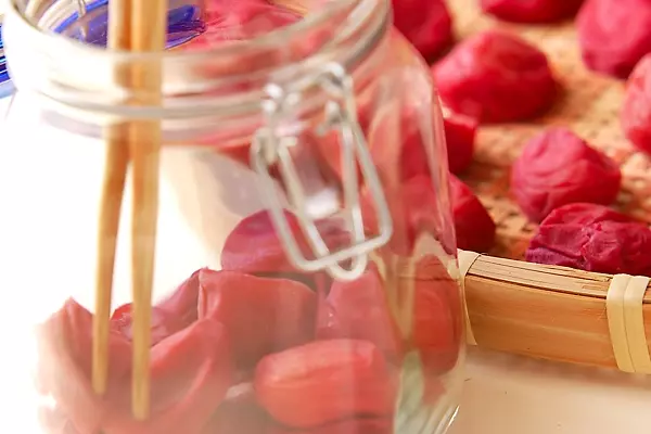 陽に干さずに「梅漬け」でも美味しくいただけます。白梅漬けの場合は、塩漬け後10~12日くらいで白梅酢をとった後、熱湯消毒した保存ビンに梅と残りの白梅酢を入れます。赤梅漬けの場合は、赤じそを入れ10~12日くらいで、赤じそを取り出し、赤梅酢をとった後、熱湯消毒した保存ビンに梅と残りの赤梅酢を入れます。梅漬けの場合は、梅酢につかった状態で保存します。