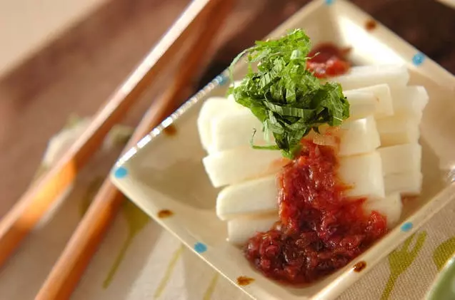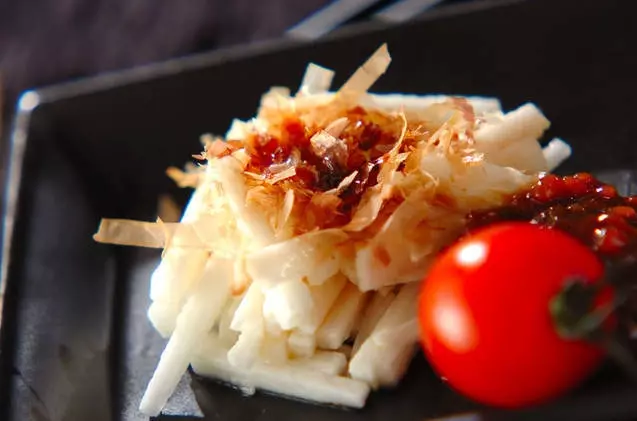 長芋をしょうゆとレモン汁に漬けて味をなじませます。サッパリとしていて箸休めに最適。