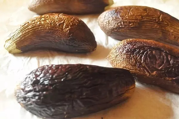 ナスはオーブンから取り出した時に全体にシワが入れば焼き上がりです。ハリが残っていたらさらに焼いてください。