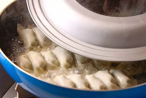 生の餃子の場合、蒸し焼きの時間はだいたい5~6分程度。冷凍餃子の場合は、凍っている具の中心までしっかりと火が通るように、生餃子より時間をかけて蒸し焼きすることが大切です。