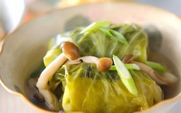 お好みで、細ネギを散らしてから食べてくださいね。こちらのレシピでは、シメジを使っていますが、マイタケやエノキに代えてもオッケーです。また、食材にニンジンやブロッコリーを加えるのもいいでしょう。洋食の代表格ともいえるロールキャベツですが、和風で味わうのもまた一興です。