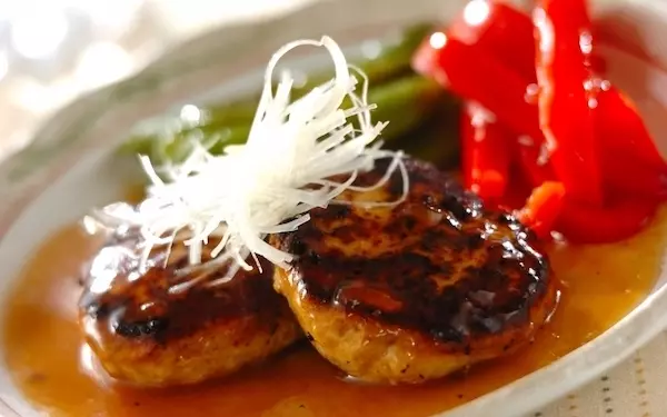 ボリューム満点なハンバーグも和風あんで味わえばあっさり感が増します。こちらのレシピでは、豆腐と豚ひき肉を半分ずつ使うので、柔らかな食感に。仕上げに、和風あんをかけ、白髪ネギをトッピングしてからいただきましょう。一度味わうとやみつきになります。
