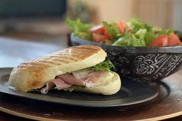生ハムの塩味をパニーニ独自の風味と甘みで見事に調和してくれています。