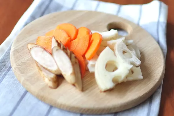 ニンジン、レンコン、ゴボウ(各適量)は薄切りにして冷凍用保存袋に入れ、冷凍庫で保存する。<作り方>
