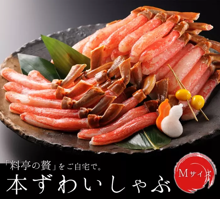 北釧水産の本ずわいしゃぶ Mサイズ。持ち手の殻を残した足のむき身ばかりの詰め合わせなので、食べやすさ抜群。セットでついてくる無添加のカニしゃぶのタレは、化学調味料不使用の自然なおいしさでお子様にも安心してお召し上がりいただけます。