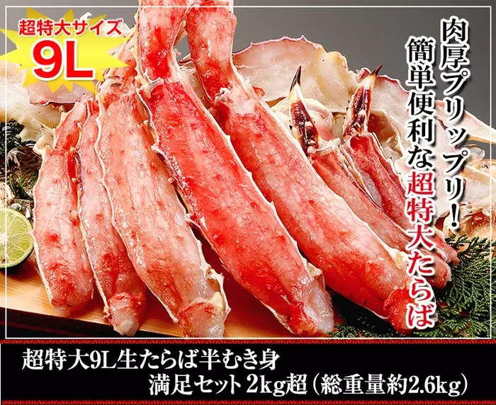 かに本舗の超特大生たらば 半むき身セット。半分殻が残っているから、解凍時に旨味が逃げません!そのまま鍋に入れるのもよし、網で焼くのもよし。生だからいろいろな食べ方を楽しめます。