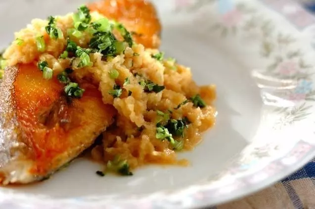 - 器に盛り、大根おろしとネギをのせ、ポン酢しょうゆをかける。