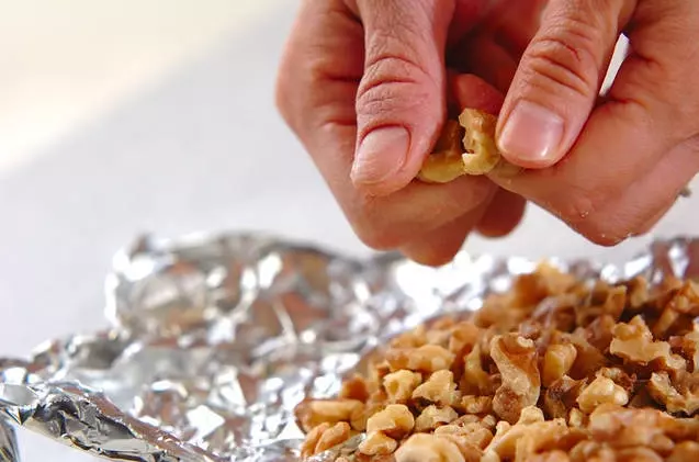 ・クルミは170℃のオーブンで8~10分ローストし、砕いておく。