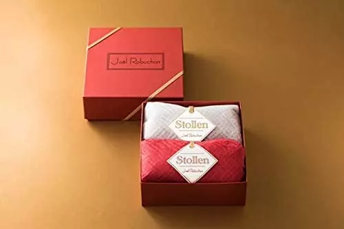 ジョエル・ロブションで毎年大人気の「シュトーレン」と、大人向けの「シュトーレンショコラ」の2つの味が楽しめる箱入りのセットです。1センチくらいにスライスし、温かい紅茶やブランデーなどと一緒にお楽しみください。