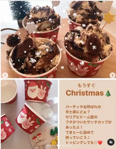もうすぐやってくるクリスマスやちょっとしたパーティには、こんなふうにかわいいカップに入れて楽しむこともおすすめしているichicoさん。おいしくて、かわいいスイーツなら、おうちパーティやお呼ばれの手土産にしても喜ばれること、間違いなしですね。