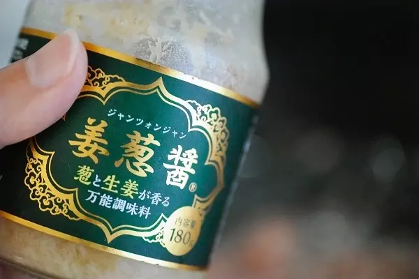 業務スーパーで大人気の、ネギと生姜が入った万能調味料、姜葱醤(ジャンツォンジャン)を入れてみました。