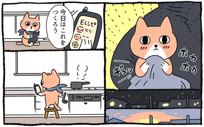 ままならぬ世の中いろいろうまくいかないこともあるけど「美味しいごはん」を食べれば元気がちょっと戻ってくる。…次回からそんな想いと共に猫が「美味しいごはん」をお届けします!