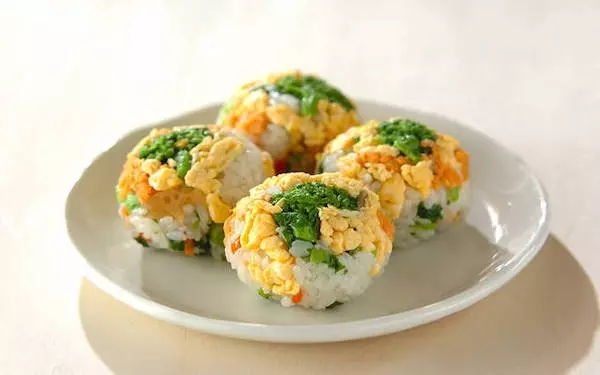 卵の黄色と菜の花のグリーンがとっても美しいてまり寿司は、ひな祭りやピクニックのお供にも。見て食べてハッピーになれる一品です。