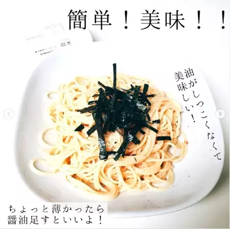続いてパスタに使ってみたら…。「混ぜるだけでめちゃうまっ!簡単でとってもおいしかった」とamikaさん。油がしつこくなく、たらこがよくパスタに絡み合ったそう。