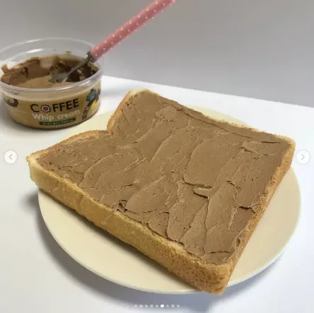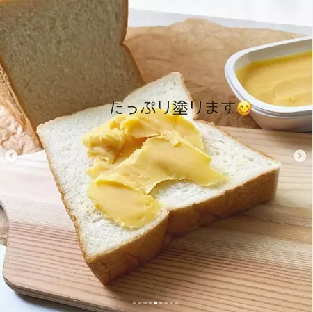 「甘いものより塩っぱい系が好きな派ですが、たまに食べたくなるんですよね~。こういうの」というShirokumaはうすさん。このときは人気の高級食パンにぬって食べたそうですが、カリカリッとしておいしかったそう。