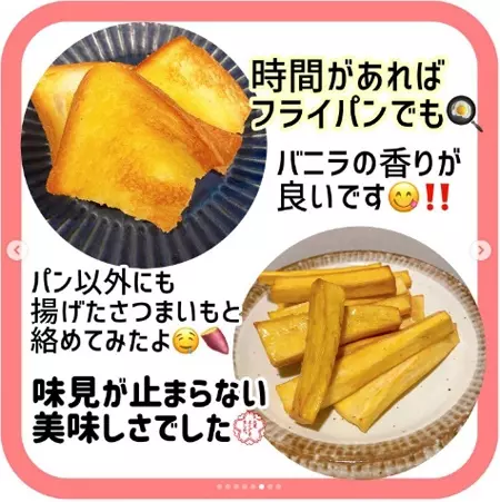 モンモンさんは、揚げたさつまいもにも絡めてみたら、「味見が止まらないおいしさでした」ともいうので、お子さんのおやつにも試してみるといいでしょう。