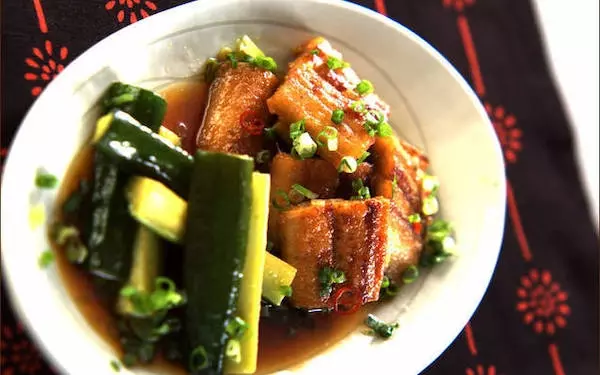 市販のアナゴに小麦粉、片栗粉をまぶし、サッと揚げて作る「アナゴの南蛮漬け」。一緒に加える野菜はキュウリ。キュウリも同様にサッと揚げることで、南蛮ダレがよく染み込みます。ご飯だけでなくお酒のおつまみにも最高な一品です。