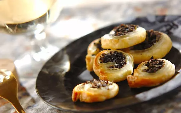 冷凍のパイ生地はおつまみも作れて重宝しますね。刻んだオリーブと粉チーズをパイ生地でクルクル巻いて焼き上げた「オリーブのパイ」は、大人テイストでワインやビールのお供にピッタリです。