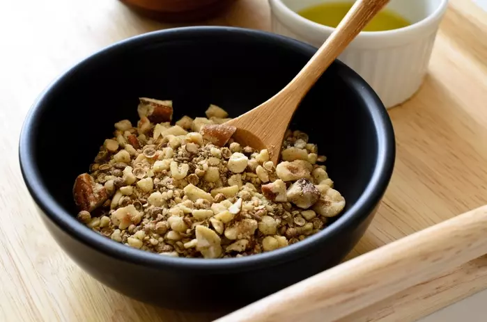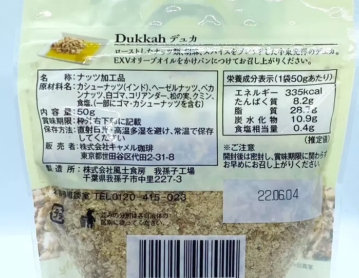 「デュカ」は、カシューナッツ、ヘーゼルナッツ、松の実、ペカンナッツ、白ゴマ、コリアンダー、クミン、食塩で作られたエジプト料理で使われる万能調味料のこと。