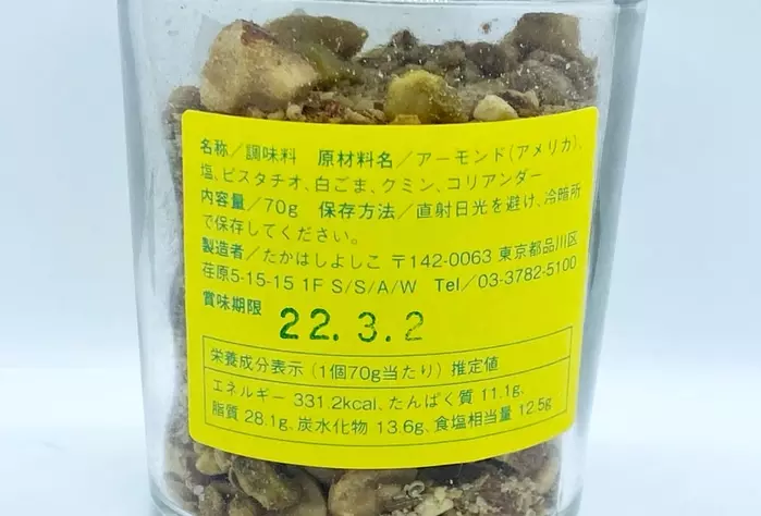 「エジプト塩」の原材料は、アーモンド、塩、ピスタチオ、白胡麻、クミン、コリアンダー。私は、こちらのエジプト塩をチョップドサラダやゆで卵にかけたり、スープにプラスして楽しんでいます。特にキーマカレーなどのエスニックなお料理にプラスすると、いつもより味に奥行ができ高級感が漂います。