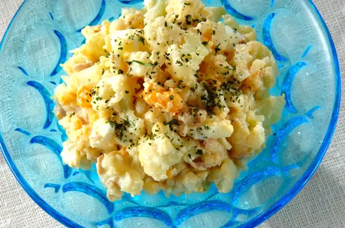 カリフラワーのサラダに「デュカ」を加えればエスニックなサラダに様変わり。ナッツやコリアンダーなどの香辛料は茹で卵との相性もピッタリ。一度食べたらまた食べたくなる食べ応えのあるエスニックテイストのサラダになります。