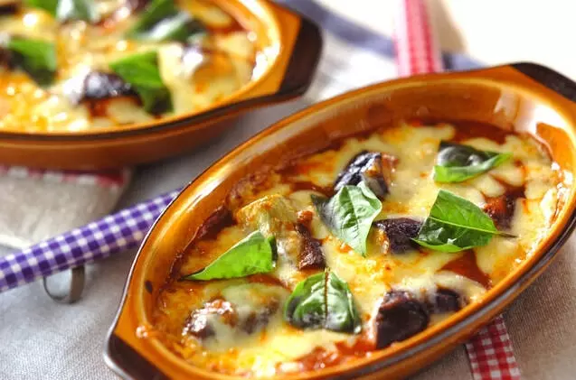 仕上げにお好みで、バジルを散らしてから召し上がれ! ナスとミートソース、チーズの美味しい競演を楽しめる一品です。具材にトマトやキノコ類をプラスするのもいいでしょう。