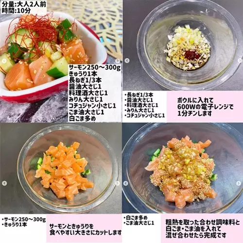 食べやすい大きさにさっと切って、レンジでチンした調味料を和えるだけ。こちらもたった10分ででき、とても簡単です。