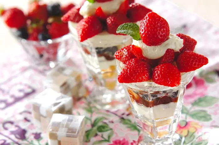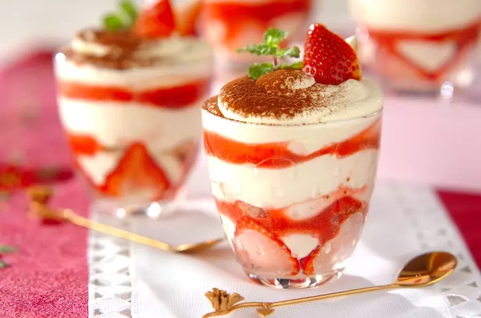 グラスで魅せる! 重ねるだけでできる宝石みたいなイチゴトライフルレシピ