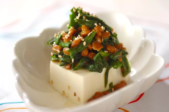血液サラサラ効果が期待できるスタミナ満点のニラと発酵食品の納豆を合わせた一品は、豆腐を崩しながら豪快にスプーンで食べたい一品です。ごま油を垂らして味変しても◎。ご飯に乗せたり海苔で巻いて食べても美味しいです。