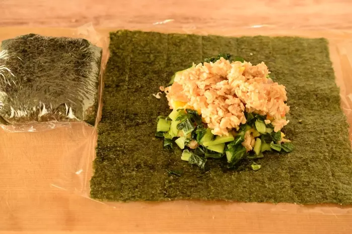 本日紹介するのは、糖質が控えめ、食物繊維とタンパク質が多く、ダイエッターに圧倒的な支持がある主食オートミールを使った「おにぎらず」です。