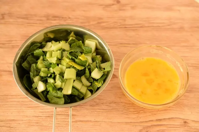 ・小松菜は洗い、1cmくらいの粗みじん切りにする。
