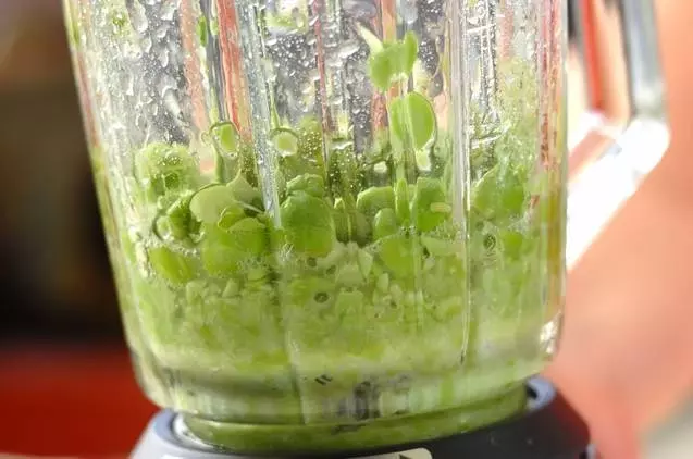 1、枝豆は解凍し、サヤから出す。<ずんだあん>の材料をミキサーに入れて、粗いペースト状にかくはんする。