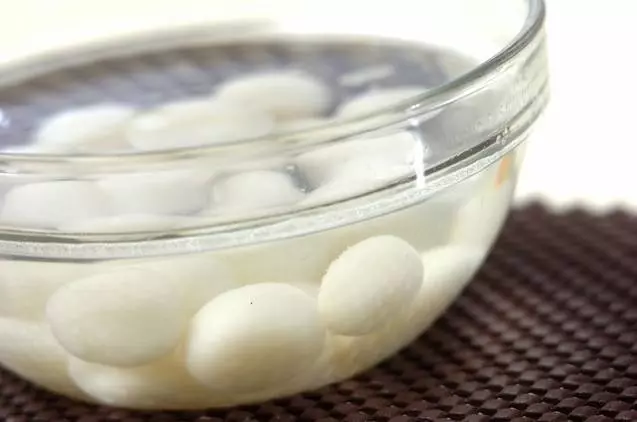 3、たっぷりの熱湯に入れ、浮き上がってきたら1分位ゆでて冷水に取る。