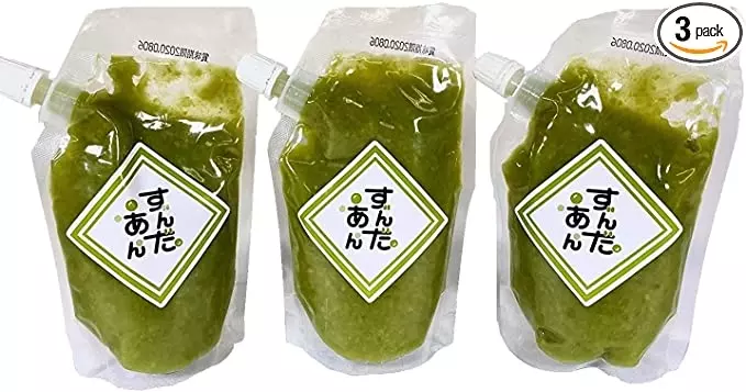 ずんだあん 東北名物 和スイーツ(3個)3個入り。内容量200g/個。東北名物の「ずんだ」をご自宅でお手軽に使用できるずんだあん。枝豆を茹で、薄皮を剥いて潰し、砂糖と食塩を混ぜて作るずんだあんは最初は甘じょっぱい不思議な味ですが、食べているうちにどんどんやみつきに!!ずんだシェイク、ずんだトースト、バニラアイスにのせて。