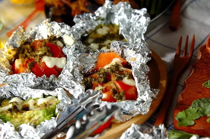 ホイルに入れて焼くだけでトロトロのホットカプレーゼが楽しめるアイディアレシピ。前出のジャーサラダと一緒に作れば、洗い物の少ないアウトドアにぴったりのメニューになりますね。