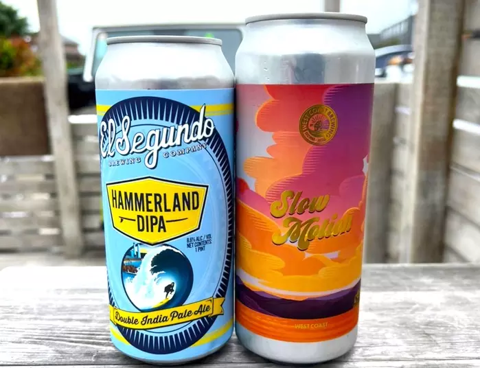 左から「El Segundo Hammerland DIPA」と「Slow Motion CB[D-Infused Hazy Session IPA」(いずれもIPA)