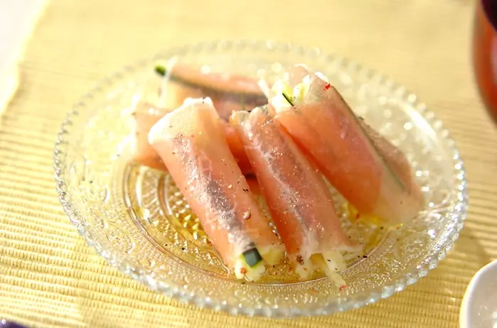 ビールのおつまみはスナック気分でつまめる一品が嬉しいです。今が旬のズッキーニを生ハムで巻くだけの簡単おつまみは、生ハムの塩味がベルジャンホワイトの華やかさをより引き出してくれます。ズッキーニ以外に茹でたアスパラガス、スプラウトやサラダチキン、アボカドを巻いても◎。