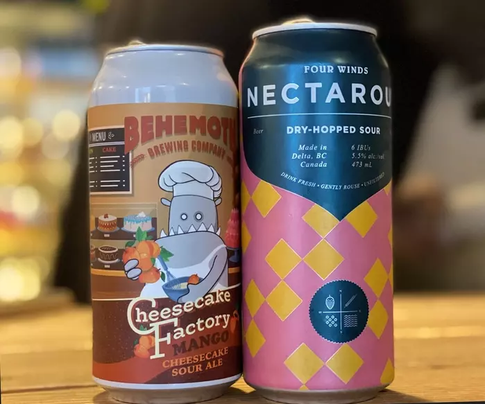 左から「Cheesecake Factory Mango Cheesecake Sour Ale」と「Four Winds Nectarous」(いずれもサワーエール)