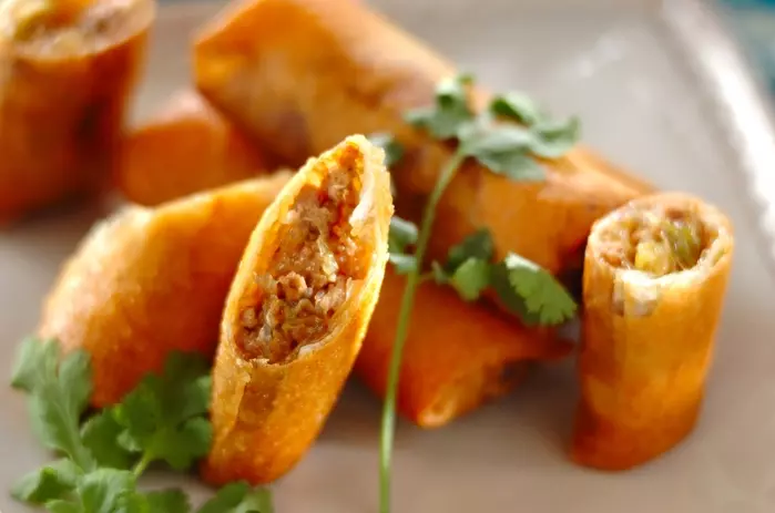 ちょっぴり思い切りがいる揚げ物ですが、巻いて揚げればおかずになるシンプルな料理。つけだれは酢じょうゆやケチャップ、スイートチリソースとバリエーションをつけると飽きずに食べられます。