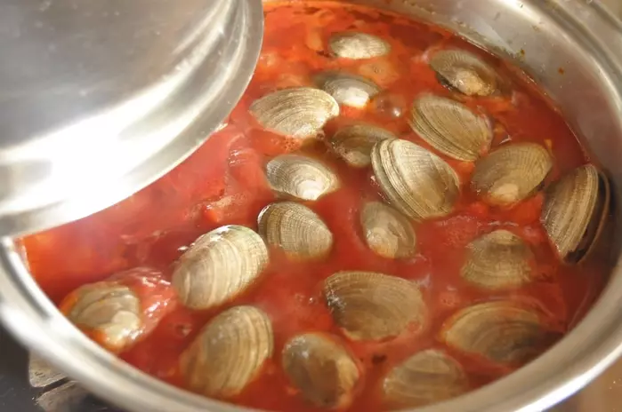 少し長めに煮込むとモッチリとした弾力のある食感が味わえて美味しいように感じます。塩分はアサリから出る塩気のみですが、味をみて薄ければ塩で調味してください。