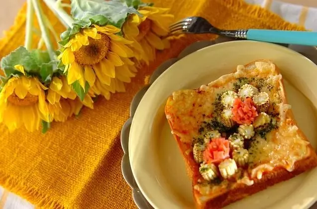 輪切りにしたヤングコーンはパッと咲いたひまわりのようでとっても可愛い!切るだけ乗せるだけで完成の簡単なひまわりトーストはお子さんの笑顔が浮かぶ一品です。