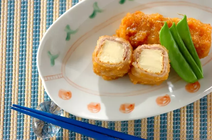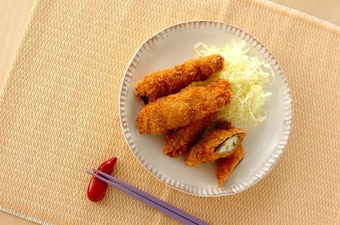 油と相性のいいナスはお肉で巻いてフライにすればボリュームはさらにアップ!少しのお肉は具に沿うように斜めに巻くと均等に巻くことができます。フライにすれば食べ応え100点満点!