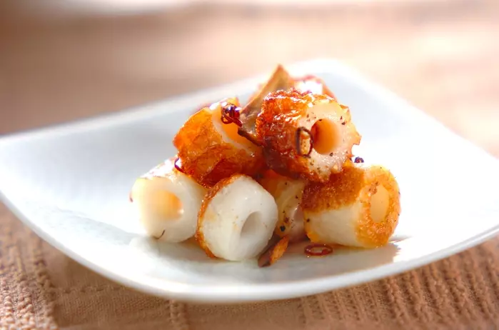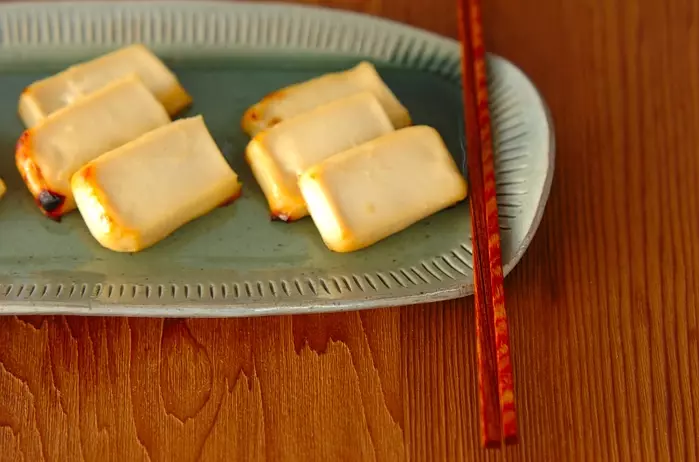 優しい甘さでカロリー控えめのハンペンにスライスチーズを挟みました。溶けたチーズとしょうゆの香ばしさでお酒が進みます。
