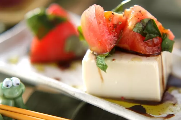高タンパク低カロリーのお豆腐を、オリーブオイルとバルサミコで洋風に仕上げた一品はワインによく合います。豆腐を木綿にすると食べ応えがUPします。